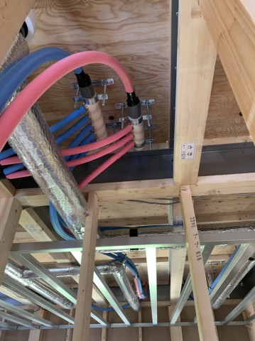 電気工事や水道工事も上棟後早い段階から工事に入っています