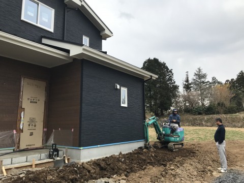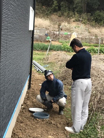 石岡市T様お打合せの帰り道、M様邸に立ち寄ると水道工事のイサミヤさんがお仕事中でした。