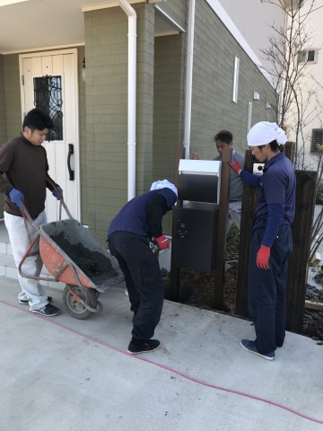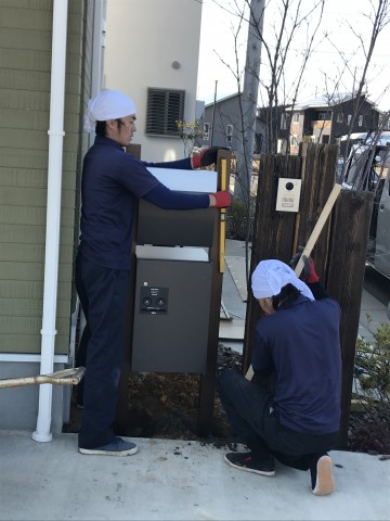 ポストと宅配ボックスが玄関わきにスッキリと設置されました!
