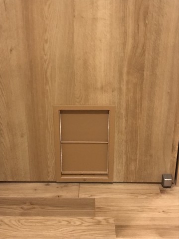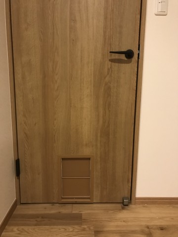 このくぐり戸でワンちゃんやねこちゃんがいつでも自由に好きな場所に移動できるんですよ。