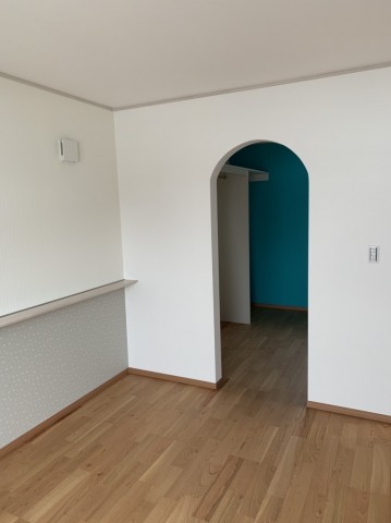 ​Rの入り口の向こうはアクセントクロスの可愛いウォークインクローゼット