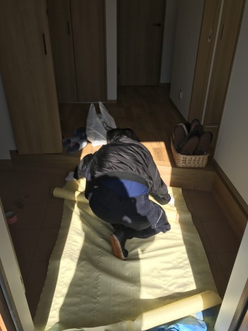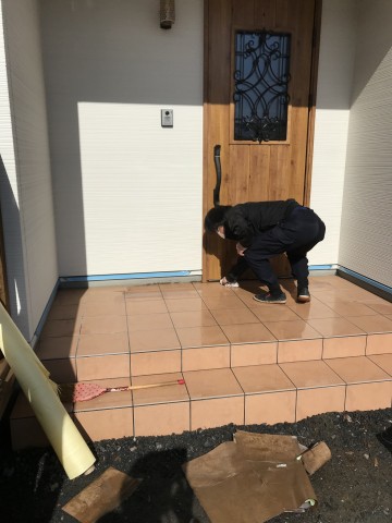 ​玄関をきれいに掃除してから養生してくれました。ありがとう。