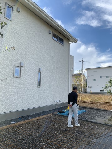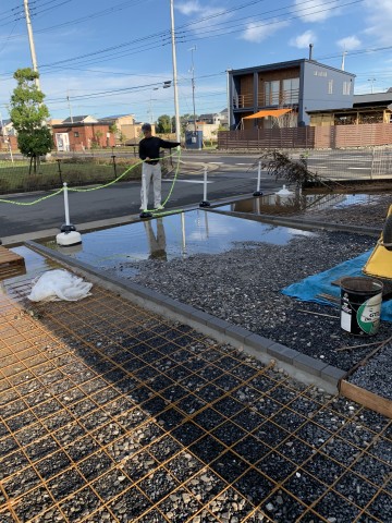 駐車場スペースのコンクリート打設がまだのところに水は溜まっていたけど他には特に問題なし