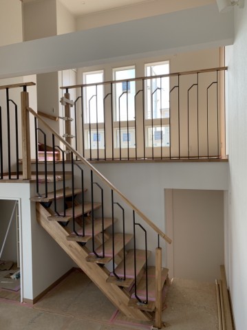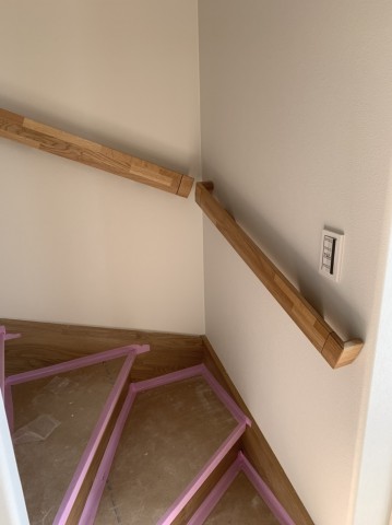 これはリスキップフロアビングから2階への階段手摺。