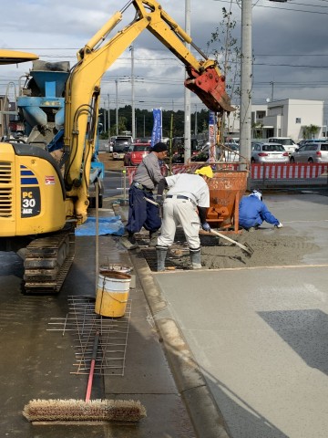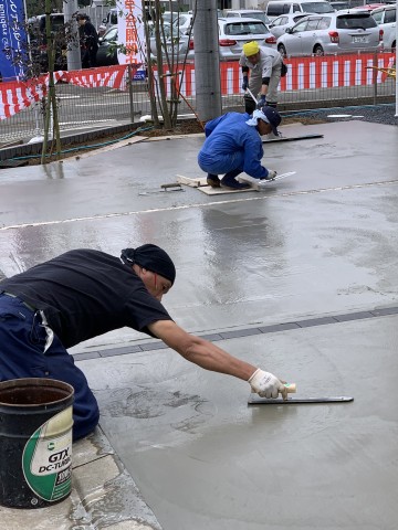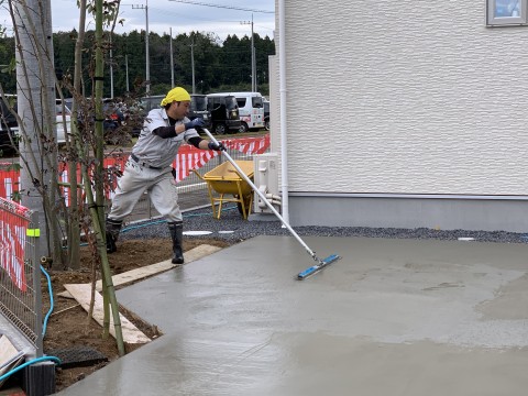 今日は日曜日にもかかわらず鬼沢園さんがモデルハウス駐車スペースのコンクリート打設工事をしてくれました。