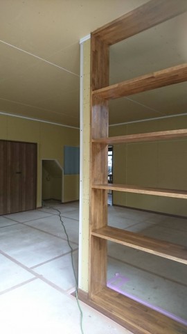 圧迫感もなく利用価値のある棚に生まれ変わった柱。