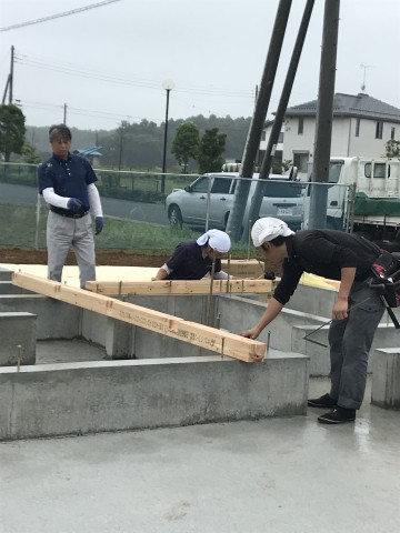 今日は現場の様子を見に行ったら土台を敷いているところでした。