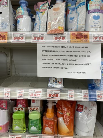 こちらの写真は前回マスクと消毒液がなくなった時の棚