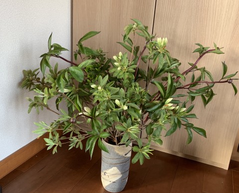 剪定したツツジを花瓶にさしてみた。