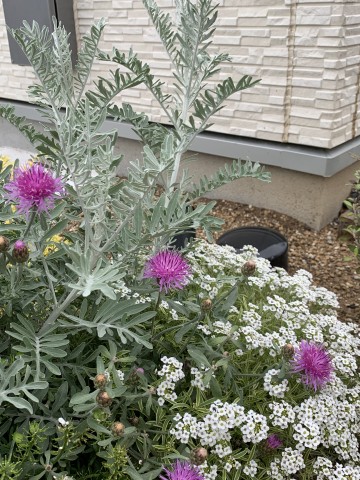 モデルハウスの門柱のところに作った花壇にきれいな花が咲きました