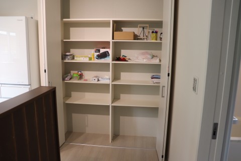 パントリーは食品だけでなくリビングで使うものも収納してLDKはいつでもスッキリ