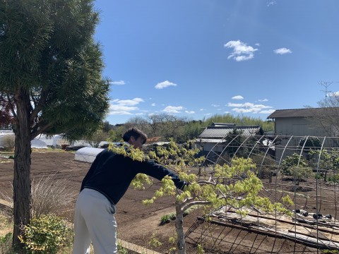 文男氏と拓実氏は朝6時30分に家を出て基礎の周りにシートをはってきました。