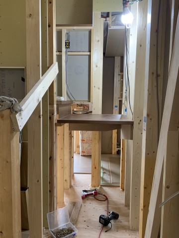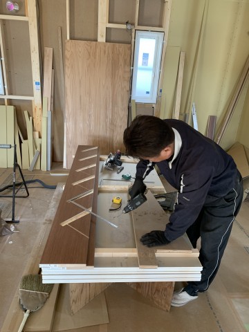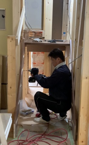 今日は拓実氏がお休みだったので心なしかさみしそうな親方は階段を作っていました。