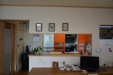 対面キッチンですが吊戸棚があって壁になっているのでちょっと個室のようなキッチンでした