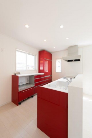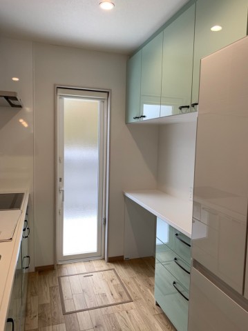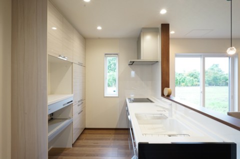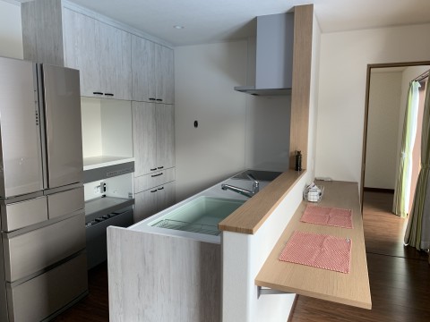ただ対面キッチンにするとリビングから見えるのはカップボ-ド部分。