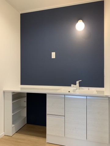 洗面所の棚がついてこれで本当に完成した田山建設事務所です。