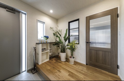 玄関ドアの両袖FIX窓が玄関を明るくしてくれています。