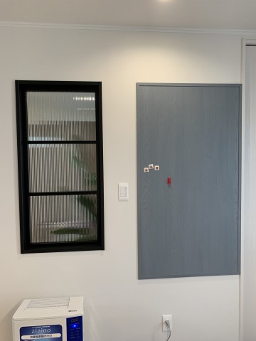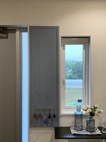 ただ有孔ボードの柄を建具と同じグレージュウォールナットにすればよかったな~と密かに反省しています。