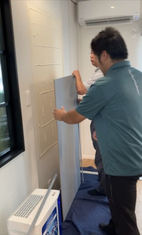 ここには有孔化粧ボードを。