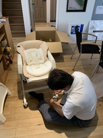 赤ちゃんたちが事務所でお留守番する時のために「おやすみ&チェア」なるものを買ってきました。