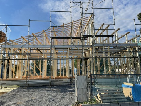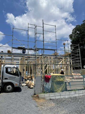 構造はもちろんですが大工さんの働く姿も見ることができますよ。