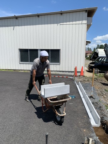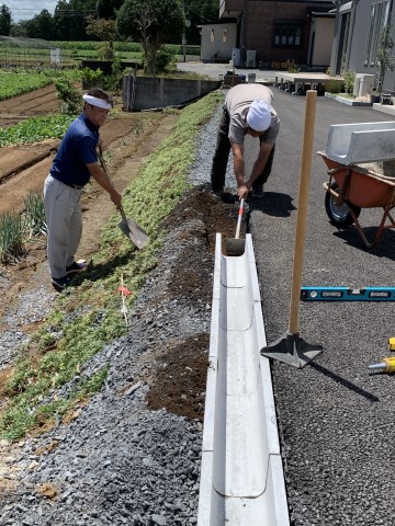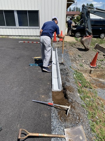 事務所の駐車場にU字溝を設置していました。