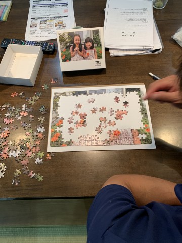 東京のお孫ちゃんから敬老の日に届いたジグソーパズル 。文男氏がやり始めちゃうから私だってやりたくなっちゃうよね。