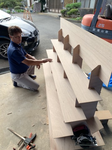 社長の文男氏は11月に開催が決まったお客様感謝祭に向けて射的の台を作ってくれました。