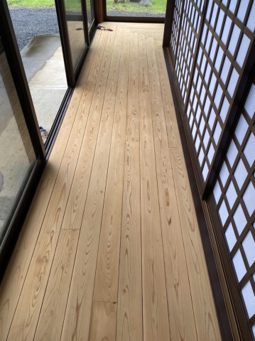 時間が経って劣化したように見える広縁でしたが無垢の床材なのでこんなにキレイに蘇らせることができました。