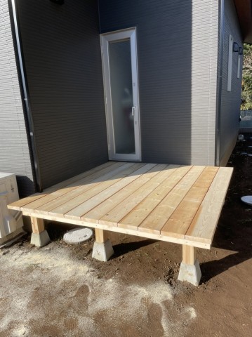最近、現場の仕事はあまりしていない社長の文男氏ですが、今日はウッドデッキをつくりました。