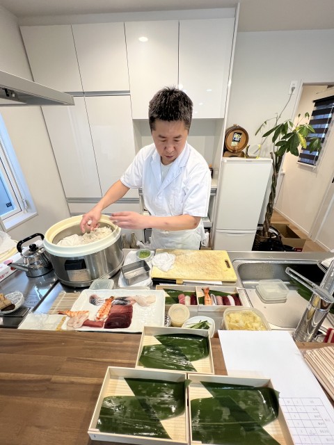 今日は浅草の鮨鶴岡さんが田山建設に来てテイクアウト販売をしてくれました。