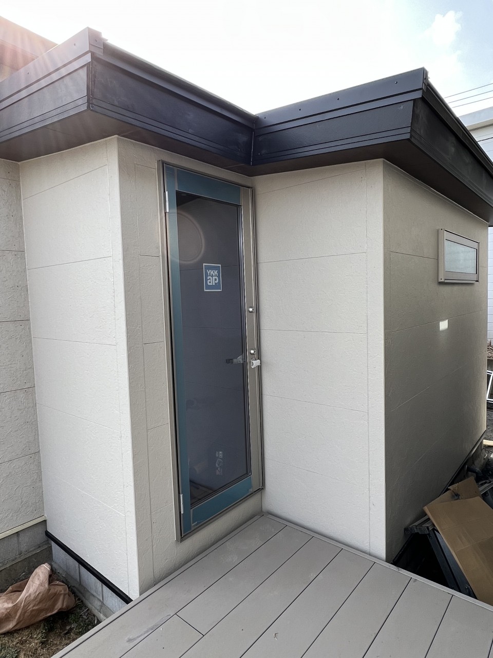 足湯の部品が入らないので内装工事は中断中。早く完成してほしいな。