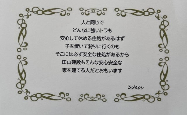 田山建設もそんな安心安全な家を建てる人だとおもいます。」