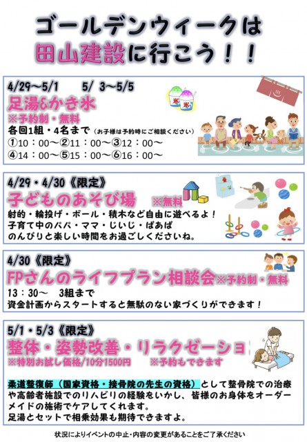 ゴールデンウィークイベントのお知らせはがきを発送しました。