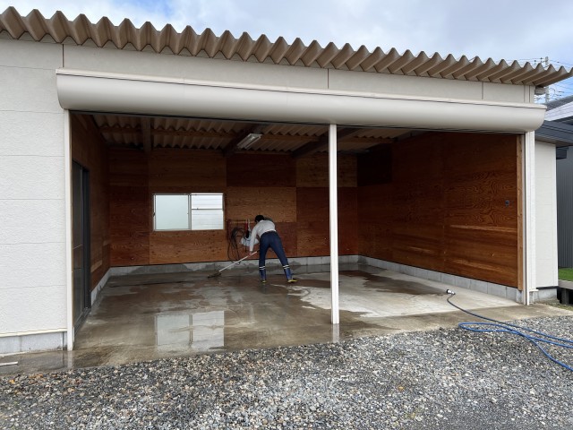 ということで、雨の日にはボールプールも射的も車庫を利用することにしました。