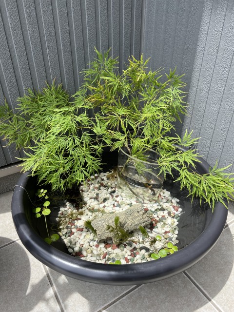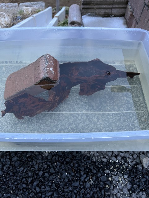 購入した流木はアク抜きしたらメダカの鉢に入れてあげます。