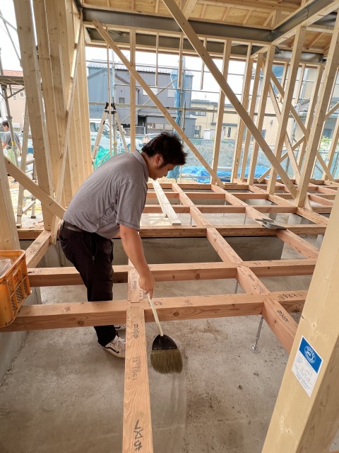 そして、現場の管理を任されている拓実氏も現場だけでなくご近所さんに迷惑にならないようにと道路の掃き掃除をしてくれています。いつもありがとう。