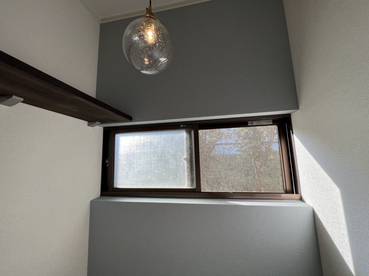 トイレ内に設置するカウンターと棚はお客様ご自身で塗装をされるということでしたので、集成材を加工してお渡しし塗装が終わってから取付させていただきました。