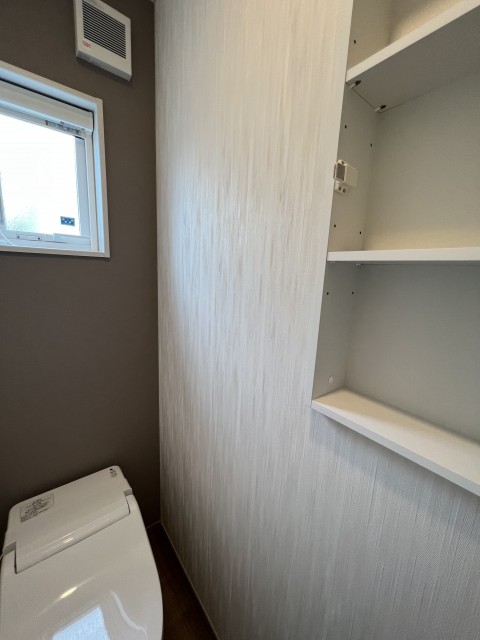 狭い空間でも壁の厚み部分を利用する事でストックのトイレットペーパーもたっぷり収納できてスッキリ空間です。