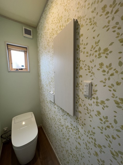 お客様が使うこともあるトイレだから、隠す収納がイイですよね。
