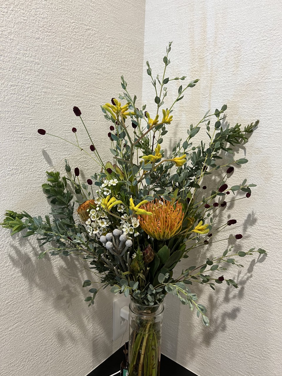 ドライフラワーにする前にしばしフレッシュで楽しみます。事務所玄関に飾ってあるのでご来場の際はぜひご覧くださいね。