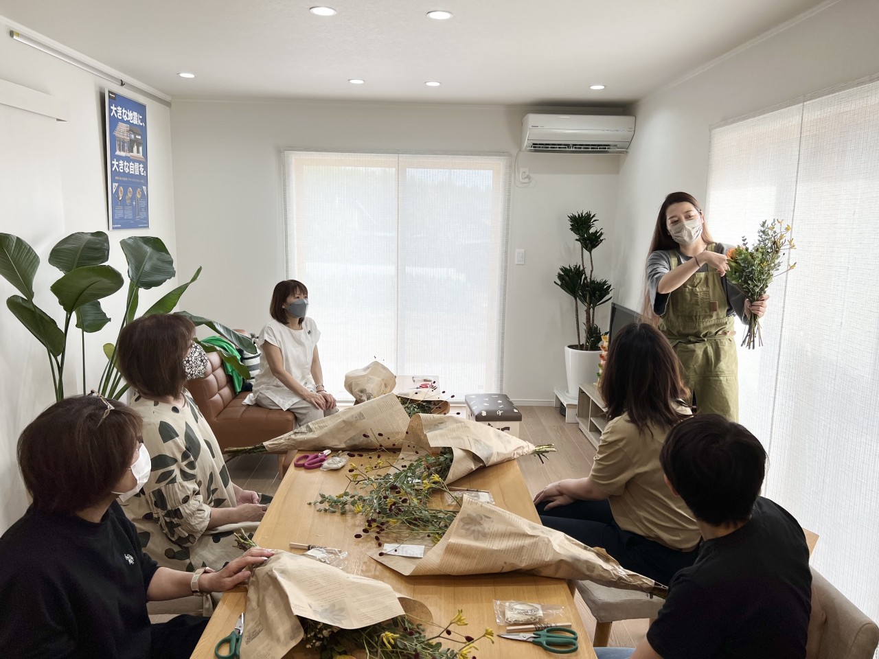むらたくつやさんのベビーシューズと革小物の展示販売とフラワーショップブロディーさんのフラワーワークショップでした。