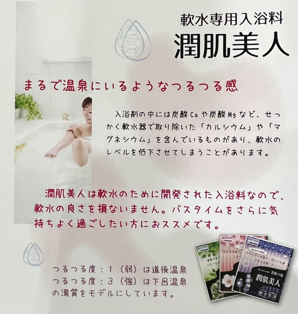 入浴剤の中には炭酸caや炭酸mgなど軟水器で取り除いた「カルシウム」や「マグネシウム」を含んでいることがあり、軟水のレベルを低下させてしまうことがあります。