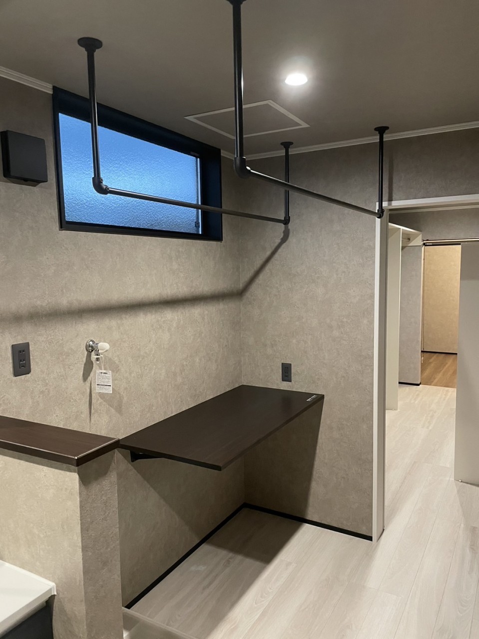 ひたちなか市のお家・ランドリールームにカウンターとアイアンバーが付きました。