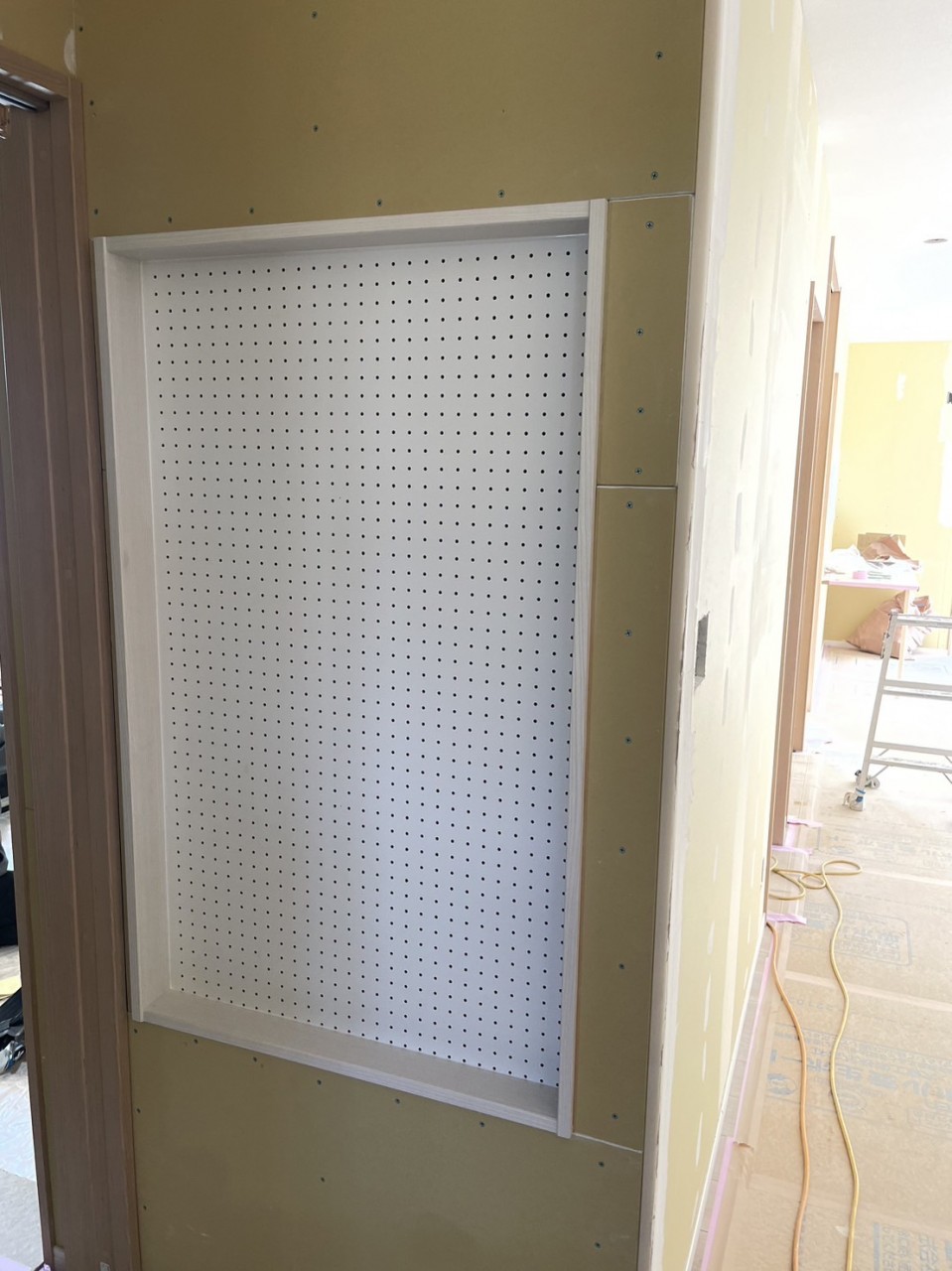 玄関からLDKへ入る動線に有孔ボードのニッチがあります。