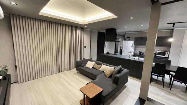 かっこいいキッチンとダイニングテーブルにはこの照明