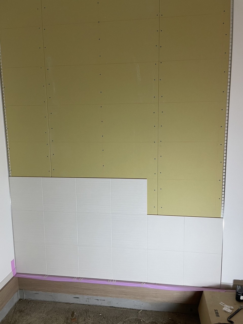 最近田山の家では定番となりつつあるお施主様家族でのエコカラット貼体験。