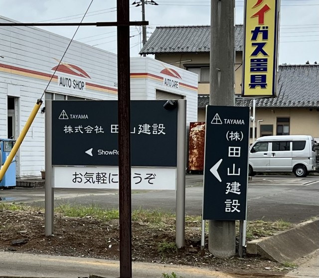田山建設の入り口にまたまた新たな看板がたちましたよ~