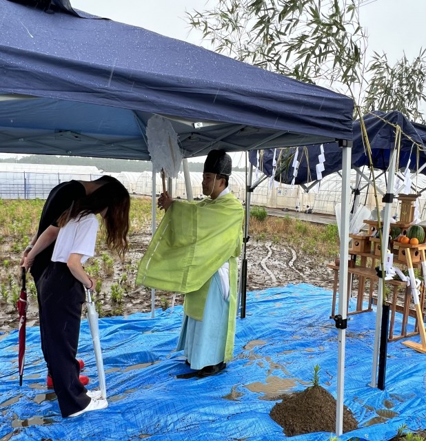 雨降りの日でしたが、実は雨の地鎮祭は縁起が良いといわれています。