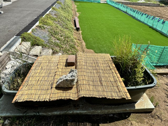 さっそくお水を足してヨシズをかけてあげました。